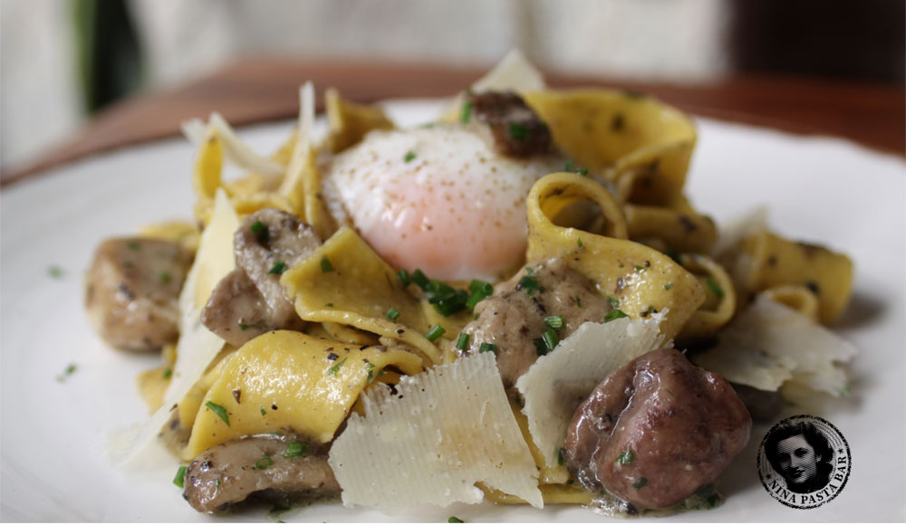 Pappardelle al estilo emiliano con boletus, trufa negra y huevo