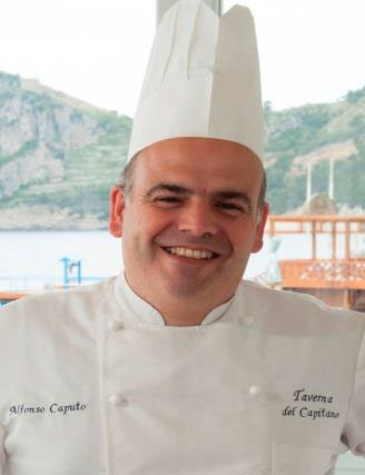 Alfonso Caputo es el chef de la Taverna del Capitano en Marina del Cantone, una localidad de la costa amalfitana en la provincia de Nápoles. Comienza su carrera profesional en 1989 en el restaurante milanés de Gualtiero Marchesi y prosigue su formación viajando de Francia a Japón para conocer las diversas culturas gastronómicas. En 1994 regresa a su tierra y coge las riendas del restaurante familiar La Taverna del Capitano. Dos años depués consigue su primera estrella Michelin. La segunda llegaría en 2006. La suya es una cocina de autor que cuenta con las aportaciones diarias de la flota pesquera del lugar y que quiere acercarnos a la cultura local, poniendo en valor el arte tradicional de la pesca.